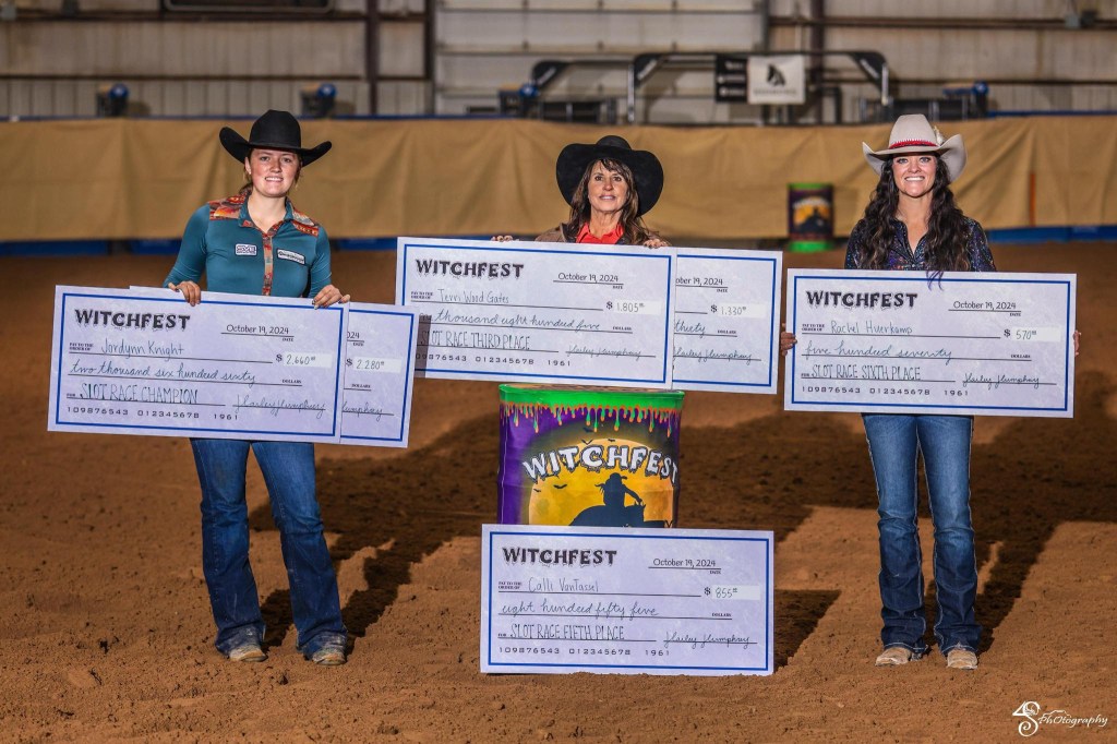 2024 Slot Race Winners – Jordynn Knight & Heza Swift Spyder 1st, Jordynn Knight & Dashing French Belle 2nd, Terri Wood Gates & Smooth Movin Lena 3rd, Terri Wood Gates & Consuelos 4th, Calli VanTassell & CVT Rockyroad 5th, and Rachel Huerkamp & Perfectly French 6th
